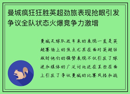 曼城足球队近年来的表现一直是英超赛场上的焦点,尤其在面对英超劲旅时,他们的强势表现不仅引发了球迷和媒体的广泛讨论,还在某些层面上引发了争议。曼城的比赛风格和战术素养一直被认为是世界顶尖,但近期他们在英超赛场上以疯狂的比分狂胜众多对手,尤其是面对一些劲旅时,曼城展现出的统治力让人瞠目结舌。这样的表现不仅凸显了球队在进攻端的火爆状态,也使得他们的竞争力进一步激增。本文将从四个方面详细分析曼城在英超赛场上的火爆状态,如何引发争议,以及他们全队竞争力的提升。这四个方面包括:曼城的进攻火力,战术体系的完善,球员状态的爆发,以及与英超劲旅对决的激烈竞争。通过这几个方面的详细分析,我们可以更清晰地看到曼城本赛季的强势表现以及背后的深层次原因。